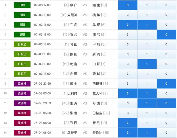 4.仙台维加泰上轮主场2:3不敌清水心跳,在保级大战中败北,仍然处于降级区内。浦和红钻上轮主场2:0完胜福冈黄蜂,联赛迎来两连胜,本季重建计划正在一步一步实施。往绩碾压,单挑客胜。