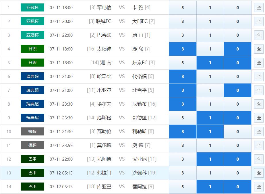 首页/ 赛事正文胜负彩076期亚冠、日职、瑞典超、挪超和巴甲的比赛构成,本期让步最深的场次是莫尔德和弗拉门戈;莫尔德指数上获得较大支持,主胜值得期待。外加有4场比赛比赛开出一球的让步;整体让步不错;但是本期难点在于冷门防范,总体的难度中等。