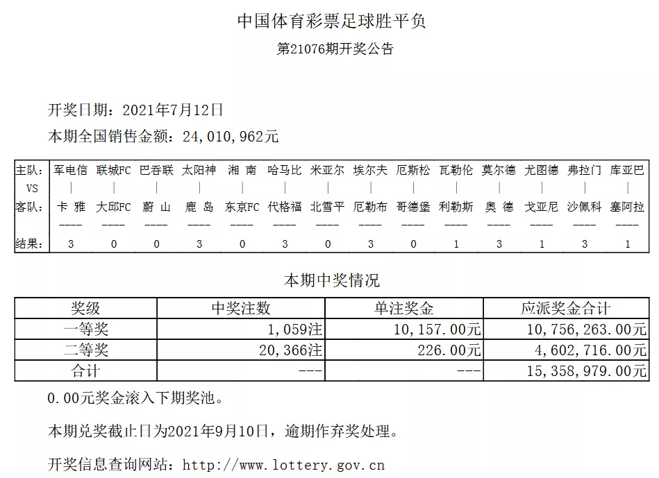 温馨提示:本期足彩开奖时间为7月12日,敬请各位彩民留意!