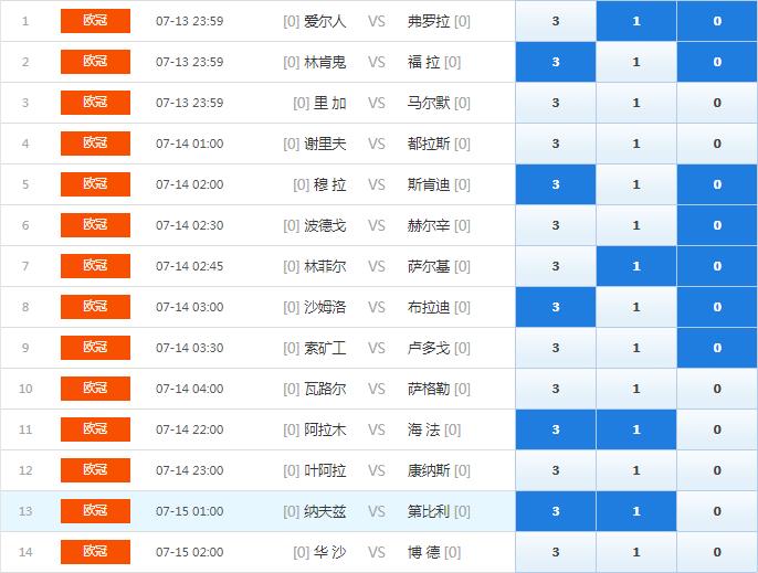首页/ 赛事正文足球14场21077是欧冠资格赛第一轮专场,本场比赛很多球队战意存疑;而且深度让步场次偏少,半一的让步都非常少,浅度让步的场次极多。本期整体难度偏难。