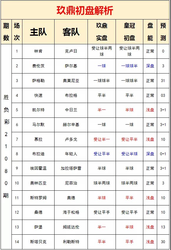 上期胜负彩没啥冷门,对阵难度不小,然而赛果还是比较正路,也是造就大火锅,没啥意思,今天周二,有一期欧冠为主的胜负彩组合,欧冠是资格赛第二轮首回合的比赛,第一轮的比赛基本上还是实力为主,第二轮应该不会大相径庭,本期是隔日的比赛,数据也不全,这种对阵就随便玩玩吧,分析一笔带过,只说重点,各位还是谨慎参考,下面进入正题!