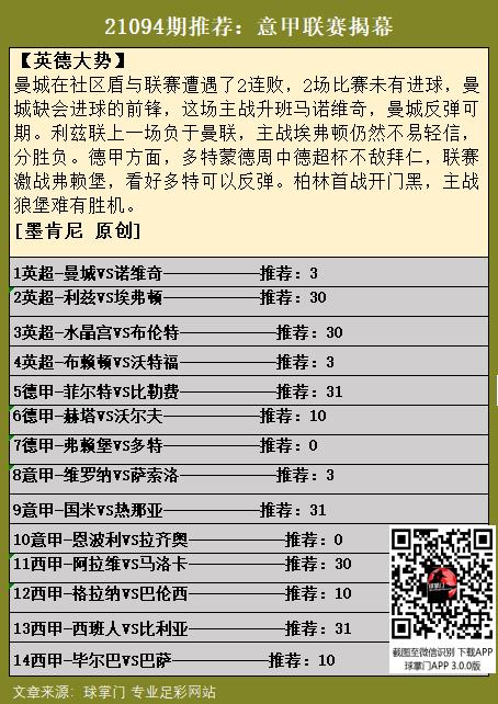 曼城在社区盾与联赛遭遇了2连败,2场比赛未有进球,曼城缺会进球的前锋,这场主战升班马诺维奇,曼城反弹可期。利兹联上一场负于曼联,主战埃弗顿仍然不易轻信,分胜负。德甲方面,多特蒙德周中德超杯不敌拜仁,联赛激战弗赖堡,看好多特可以反弹。柏林首战开门黑,主战狼堡难有胜机。