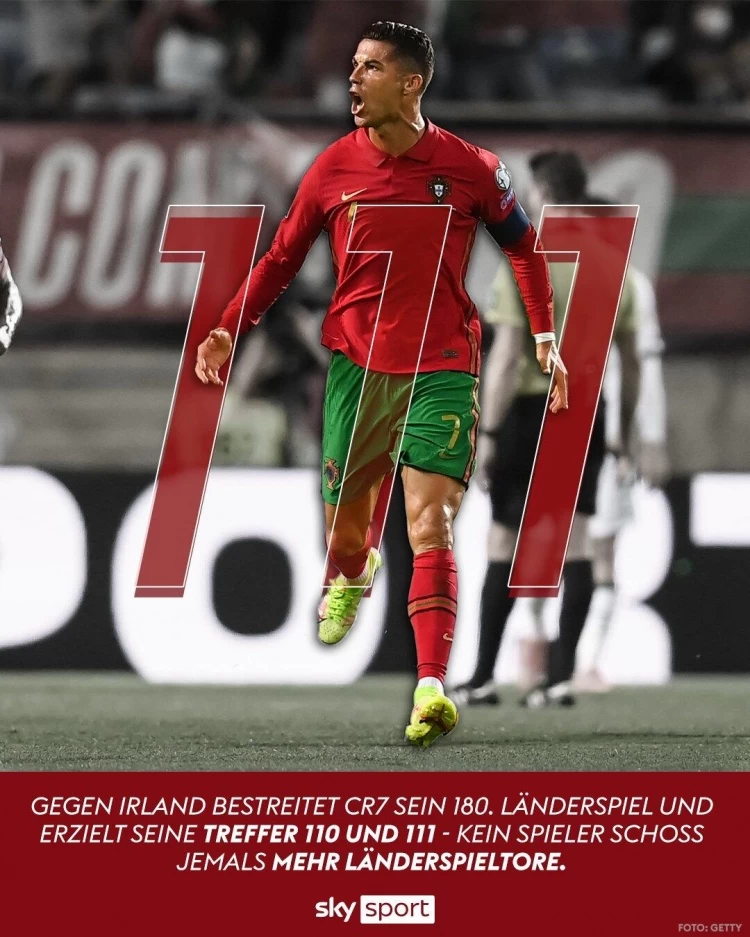 首页/ 赛事正文世预赛葡萄牙2-1逆转爱尔兰,C罗终场前梅开二度+读秒绝杀,以111球超越阿里-代伊,独占国家队历史射手榜头名