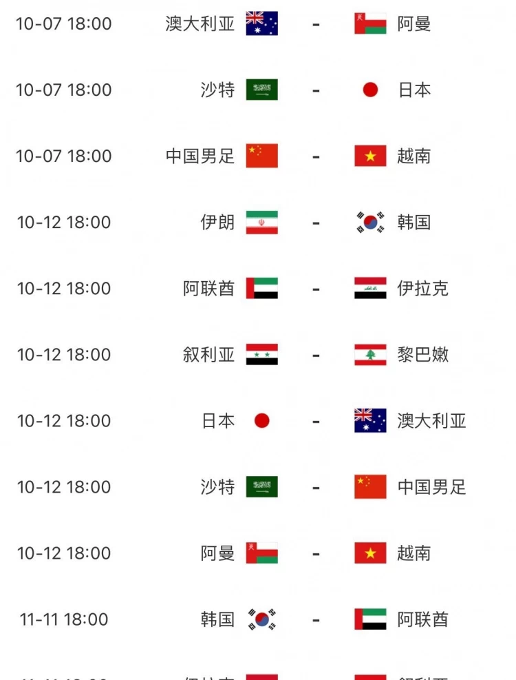 国足接下来将在10月7号对阵越南,10月12号对阵沙特。