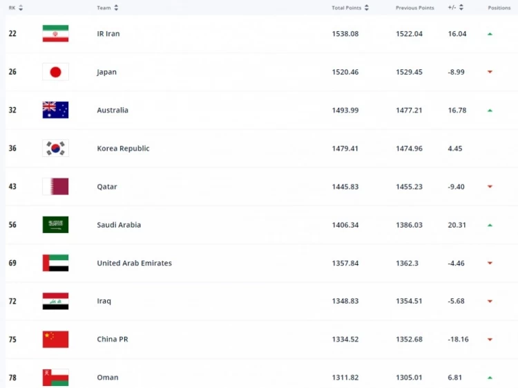 首页/ 赛事正文球掌门9月16日获悉:FIFA公布新一期国家队排名,中国男足较上期下跌4位,落至世界第75,亚洲方面仍然位列第9。