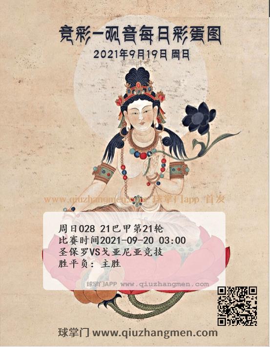 竞彩-观音每日彩蛋图 2021年9月19日 周日