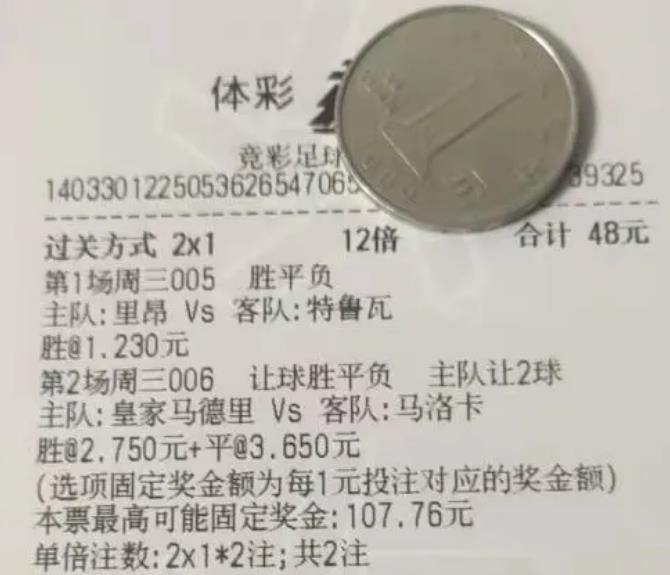 但是我还是不敢要大胜了,出于谨慎就要了一个主胜,搭配皇马的让胜和让平,做一个串关。里昂的比分是2比1和2比0。