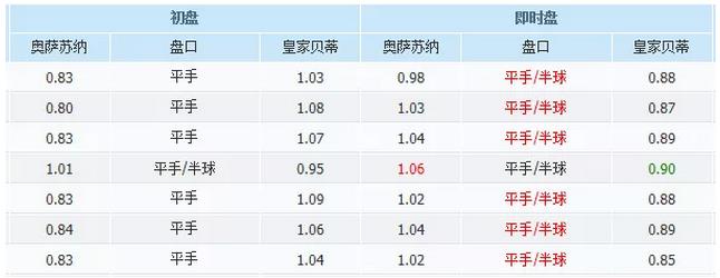 初指平手中低水,在合理盘的基础上,水位给予奥萨苏纳更强的支持力度。走势升盘平半高水莫名其妙,基本面中找不出任何支撑题材。甚至在我个人看来,如果平手盘的基础上必须变盘,也应该贝蒂斯客让平半才对。