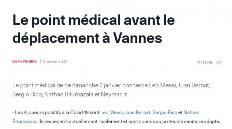 4位COVID-19呈阳性的巴黎圣日耳曼球员分别是梅西,贝尔纳特,里科,比图马扎拉。他们已经开始进行自我隔离,并积极恢复治疗。