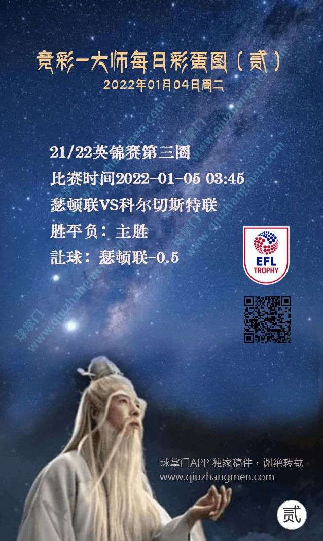 竞彩大师每日彩蛋图 2022年1月4日 周二