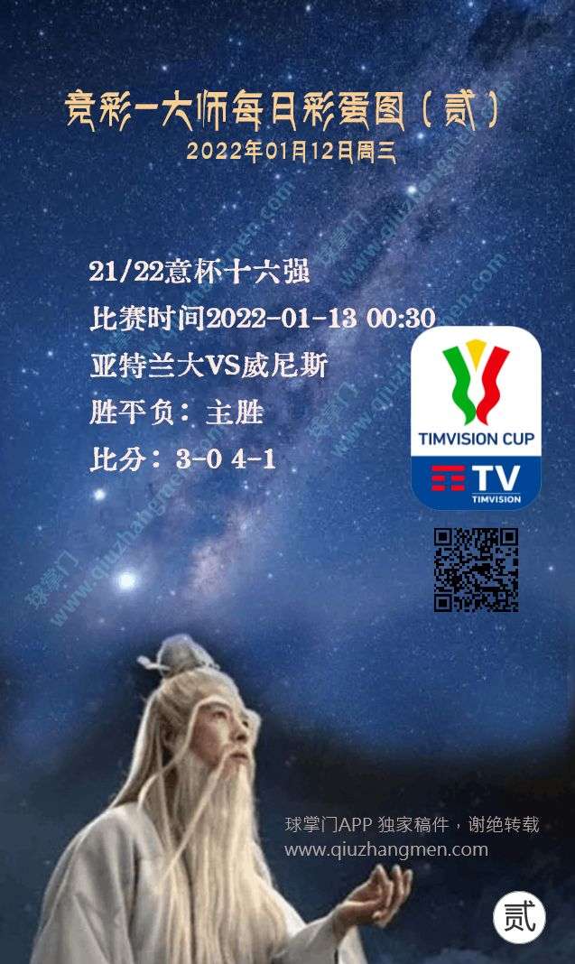竞彩大师每日彩蛋图 2022年1月12日 周三
