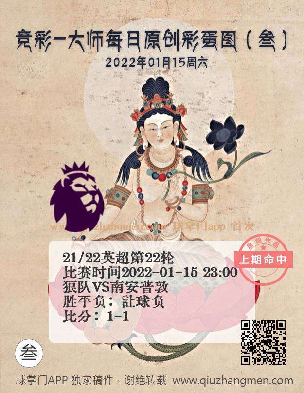 竞彩观音每日彩蛋图 2022年1月15日 周六