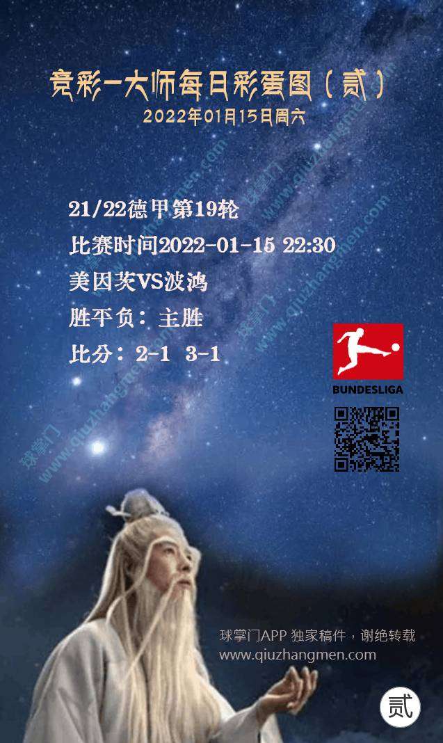 竞彩大师每日彩蛋图 2022年1月15日 周六