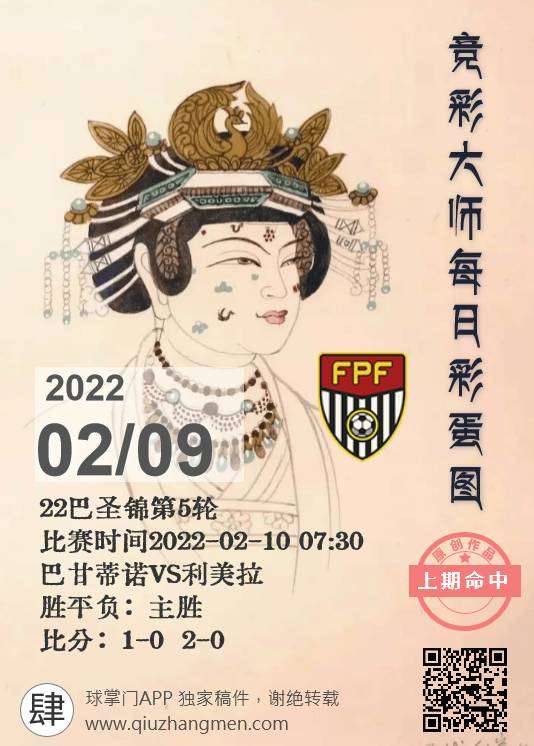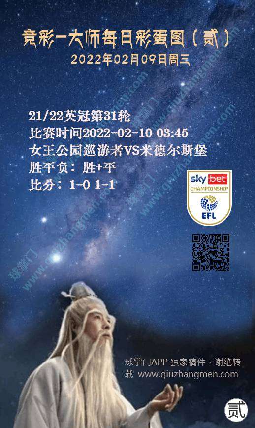 竞彩大师每日彩蛋图 2022年2月9日 周三