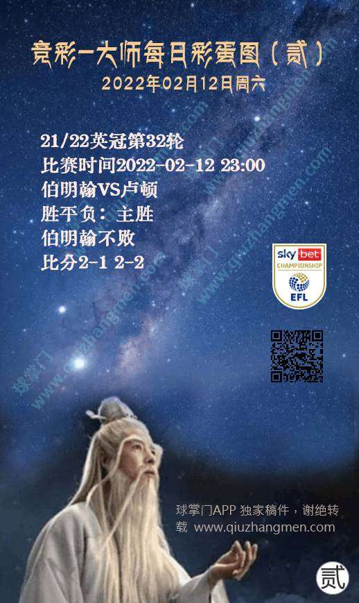 竞彩大师每日彩蛋图 2022年2月12日 周三