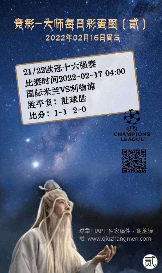 竞彩大师每日彩蛋图 2022年2月16日 周三