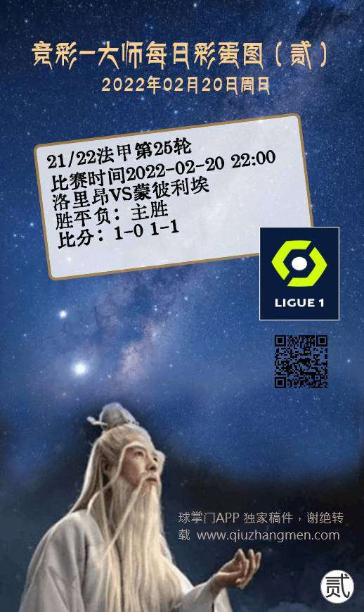 竞彩大师每日彩蛋图 2022年2月20日 周日