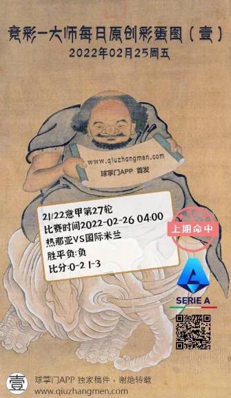 竞彩大师每日彩蛋图 2022年2月25日 周五