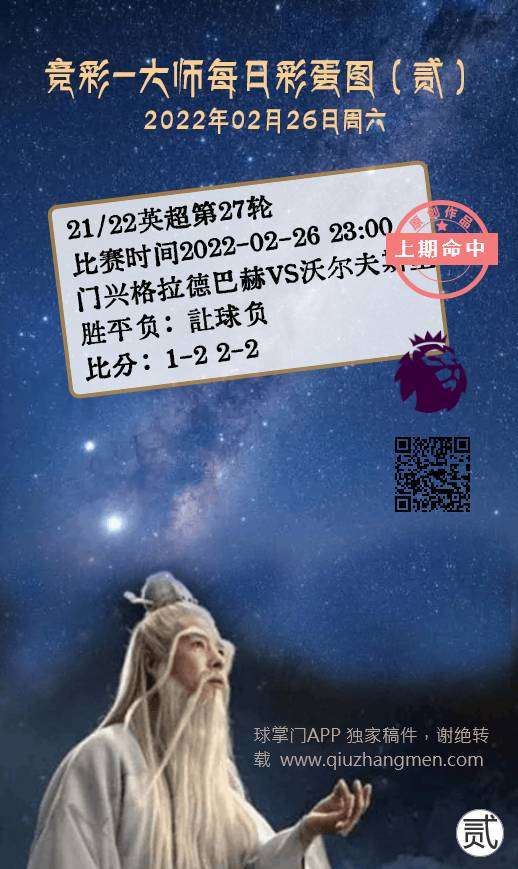 竞彩大师每日彩蛋图 2022年2月26日 周六