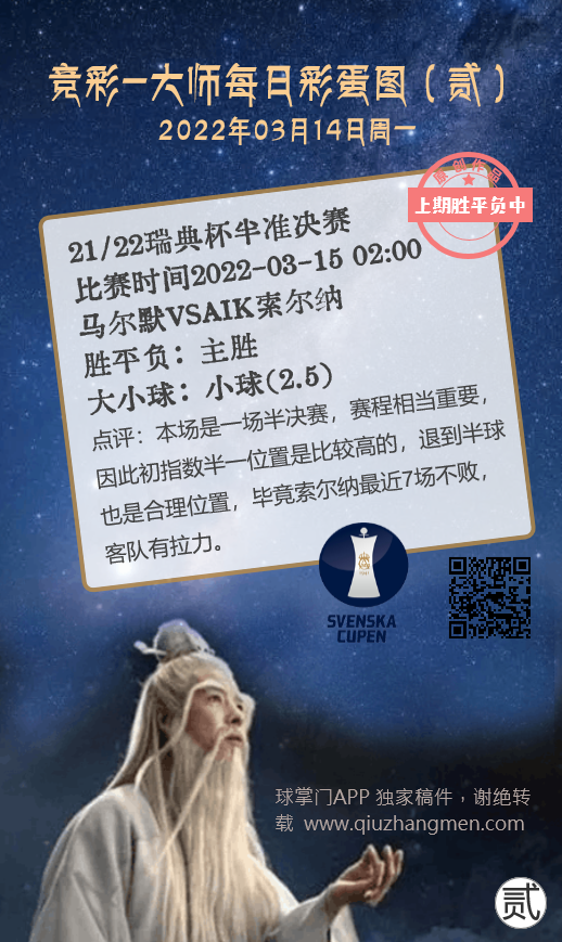 竞彩大师每日彩蛋图 2022年3月14日 周一