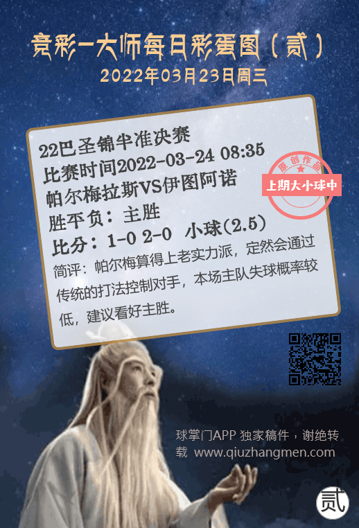 巴圣锦半准决赛:帕尔梅拉斯VS伊图阿诺 大小球与比分