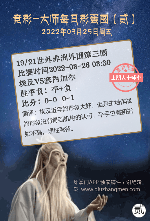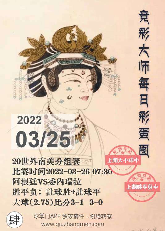 竞彩大师每日彩蛋图 2022年3月25日 周五
