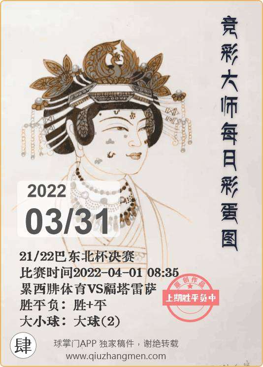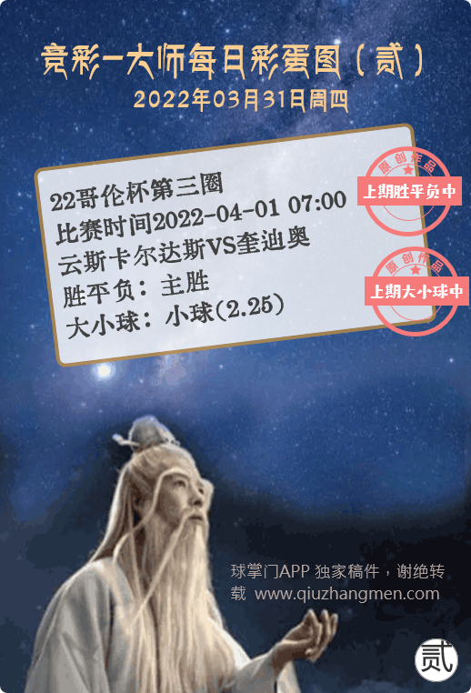 竞彩大师每日彩蛋图 2022年3月31日 周四