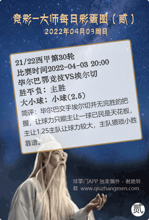 竞彩大师每日彩蛋图 2022年4月3日 周日