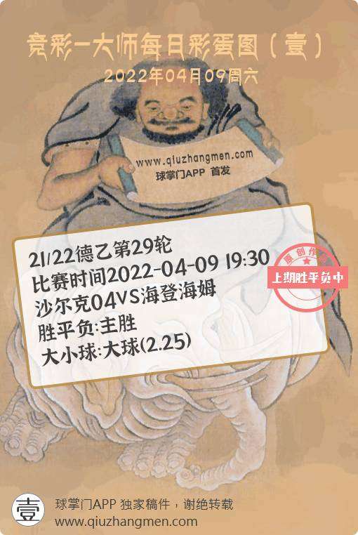 亚盘大师每日彩蛋图 2022年4月9日 周六(壹)