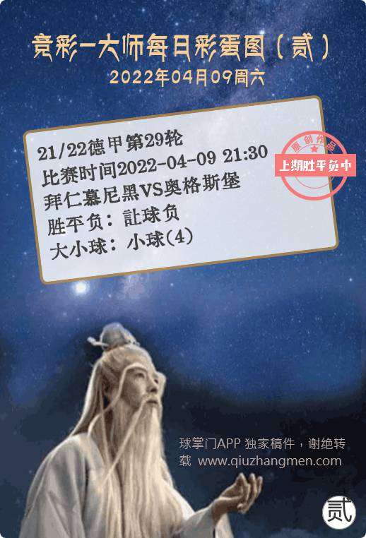 竞彩大师每日彩蛋图 2022年4月9日 周六