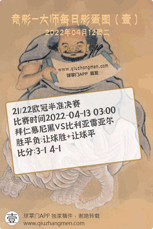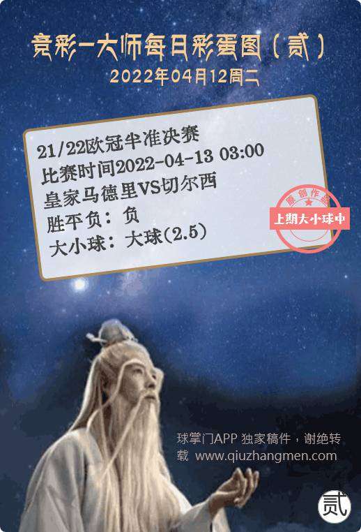 竞彩大师每日彩蛋图 2022年4月12日 周二