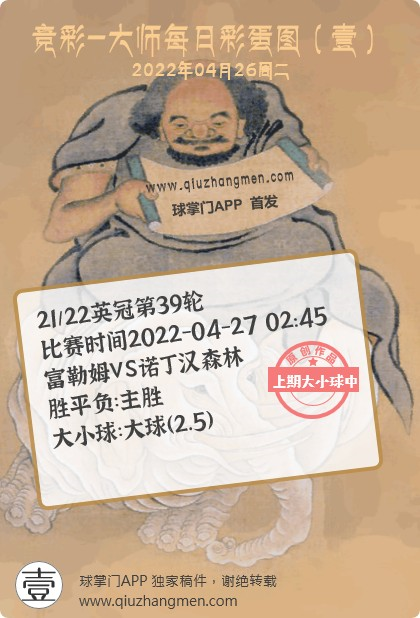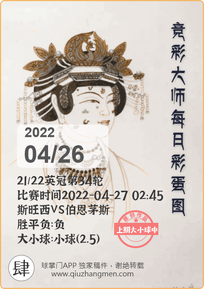 亚盘大师每日彩蛋图 2022年4月26日 周二(壹)