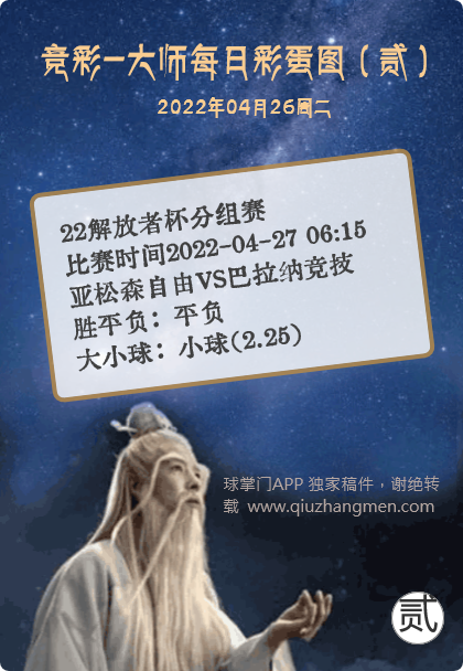 竞彩大师每日彩蛋图 2022年4月26日 周二