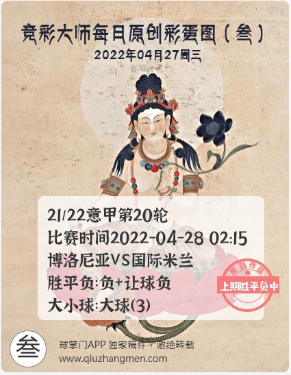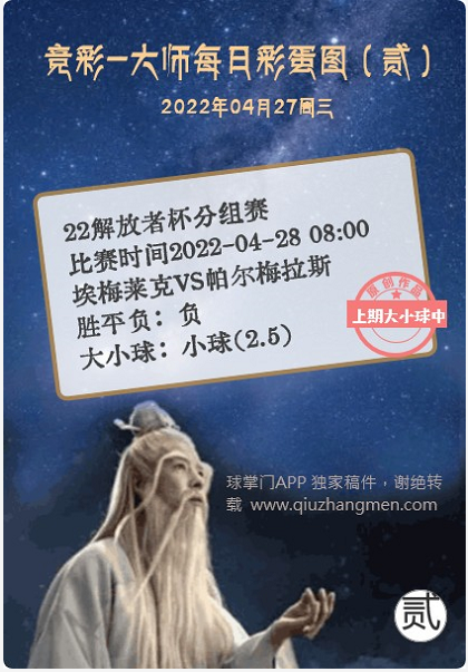 竞彩大师每日彩蛋图 2022年4月27日 周三