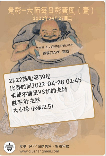 亚盘大师每日彩蛋图 2022年4月27日 周三(贰)