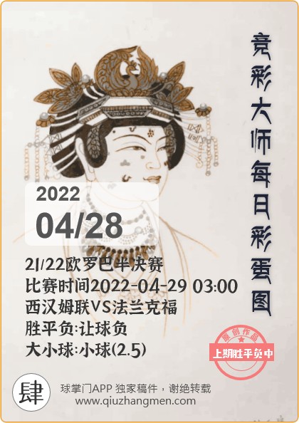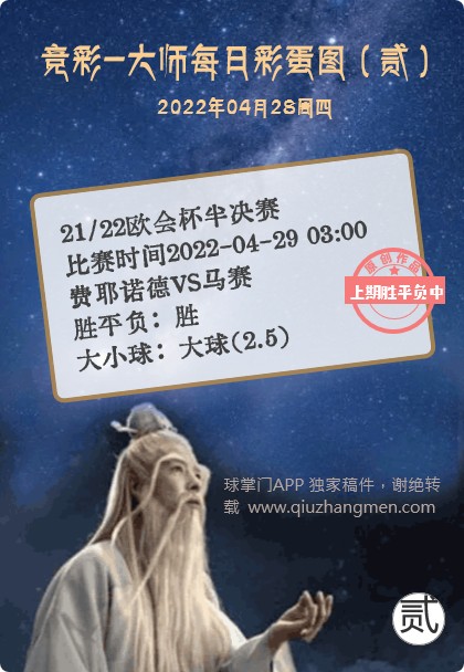 竞彩大师每日彩蛋图 2022年4月28日 周四