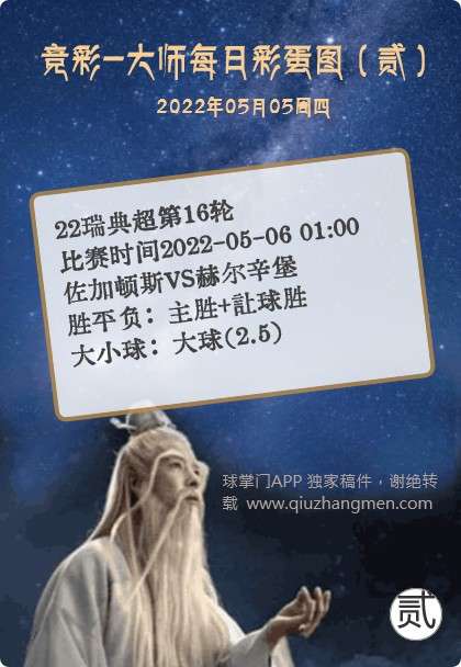 竞彩大师每日彩蛋图 2022年5月5日 周四