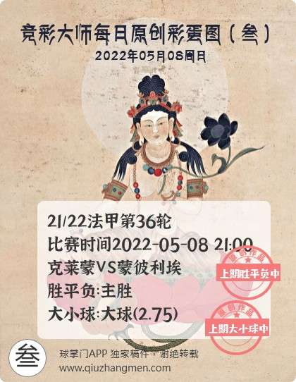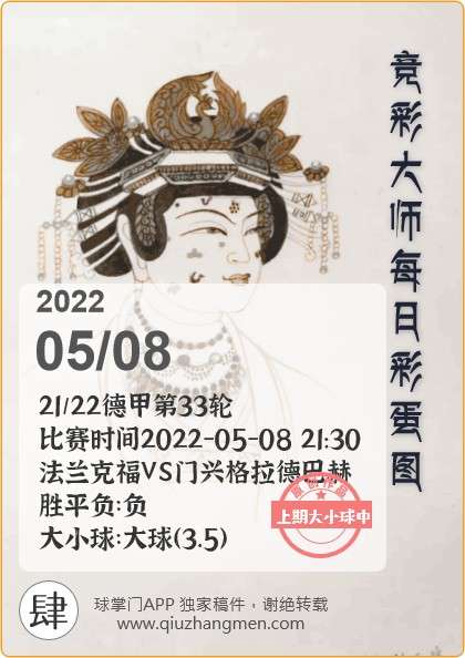 竞彩大师每日彩蛋图 2022年5月8日 周日