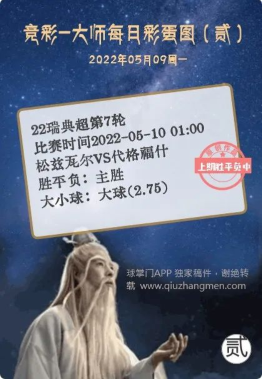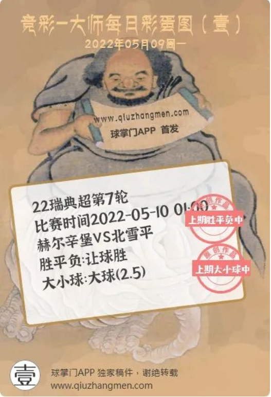 竞彩大师每日彩蛋图 2022年5月9日 周一