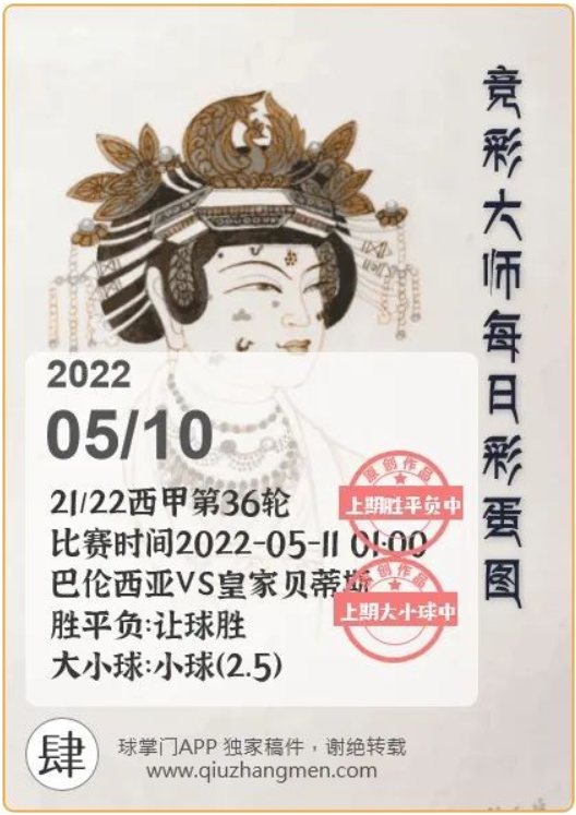 竞彩大师每日彩蛋图 2022年5月10日 周二