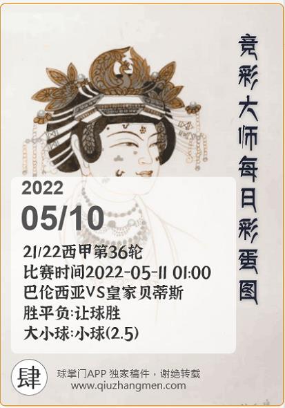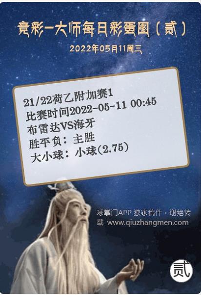 竞彩大师每日彩蛋图 2022年5月11日 周三