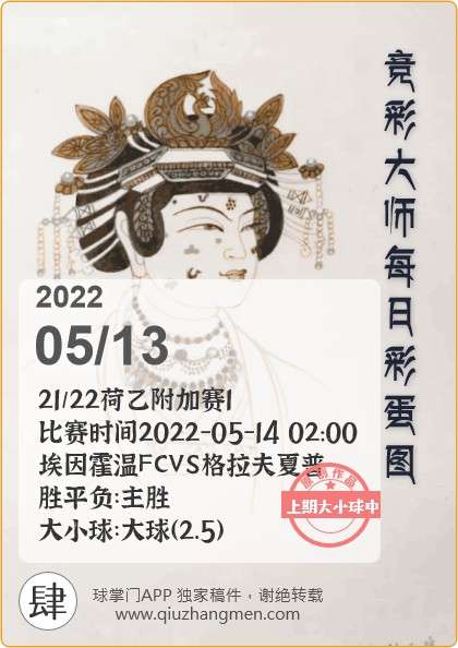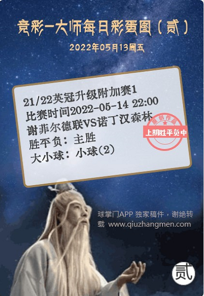 竞彩大师每日彩蛋图 2022年5月13日 周五