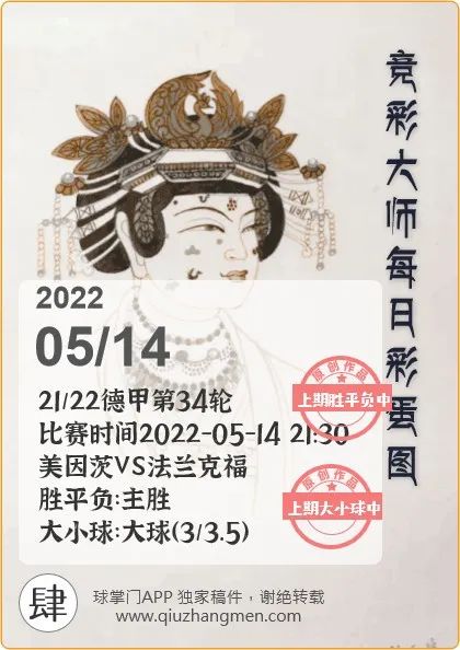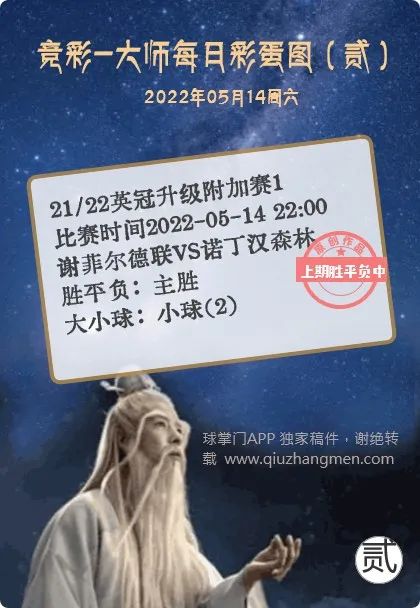 竞彩大师每日彩蛋图 2022年5月14日 周六