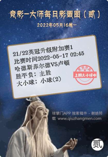 竞彩大师每日彩蛋图 2022年5月16日 周一
