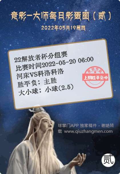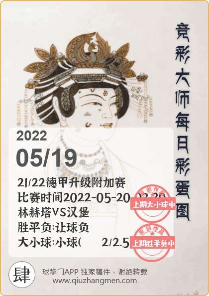竞彩大师每日彩蛋图 2022年5月19日 周四