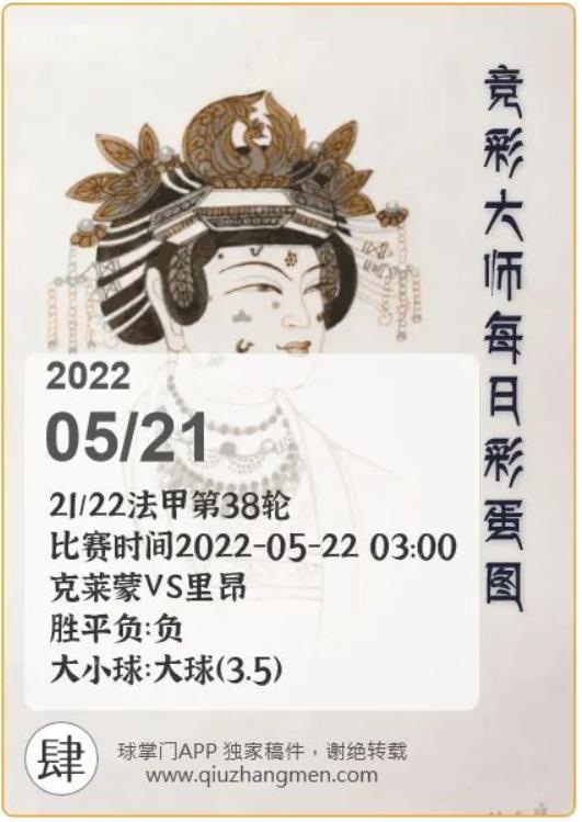 竞彩大师每日彩蛋图 2022年5月21日 周六