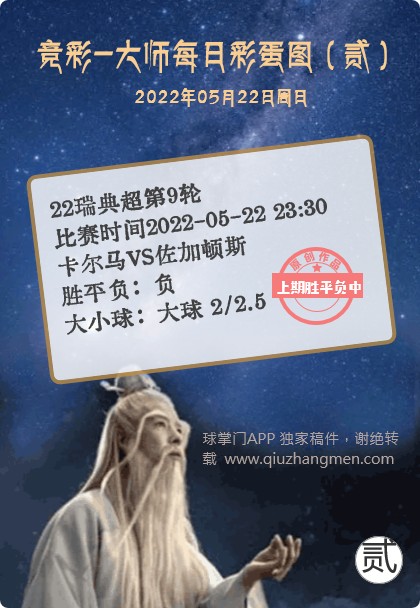 竞彩大师每日彩蛋图 2022年5月22日 周日