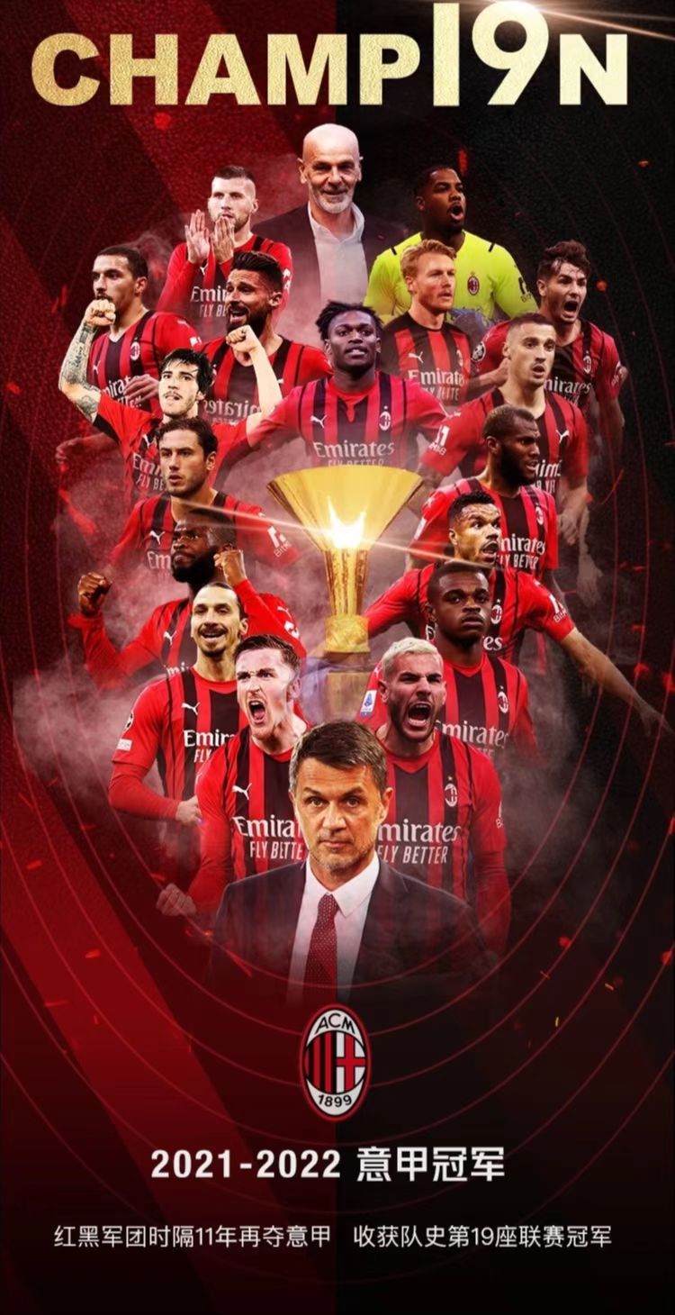 这是AC米兰队史第19座意甲联赛冠军,在意甲冠军数排行上,红黑军团追平了同城对手国米,两队均为19冠并列第二。
