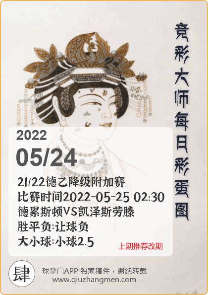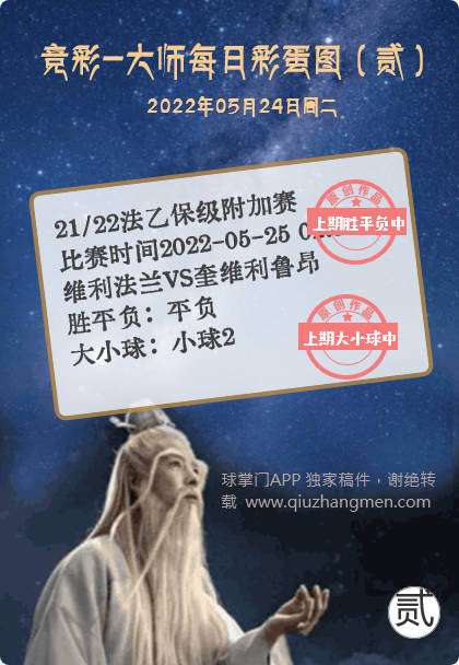 竞彩大师每日彩蛋图 2022年5月24日 周二