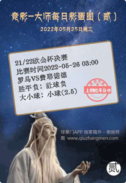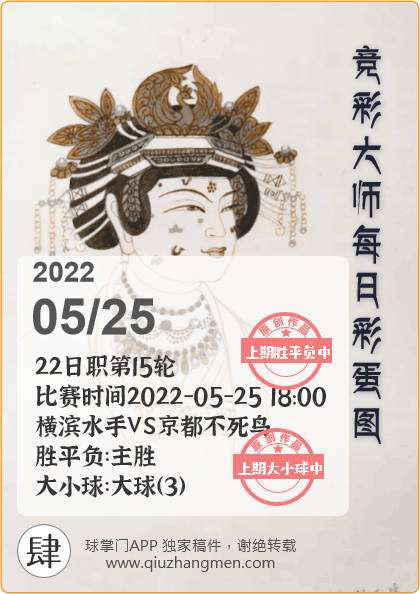竞彩大师每日彩蛋图 2022年5月25日 周三